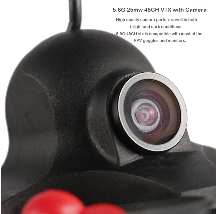 Good for FPV: It comes with high quality camera, which performs well in both bright and dark condition. The video tx is 5.8G 25mw 48 channel, suitable for most of the related fpv goggles and monitors.