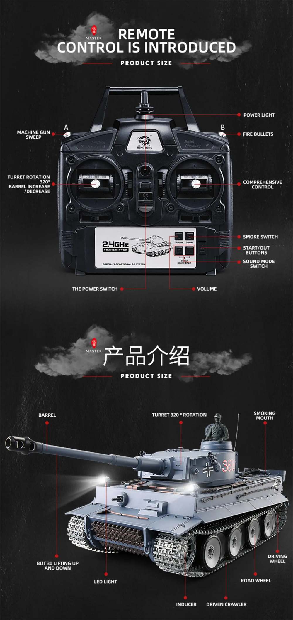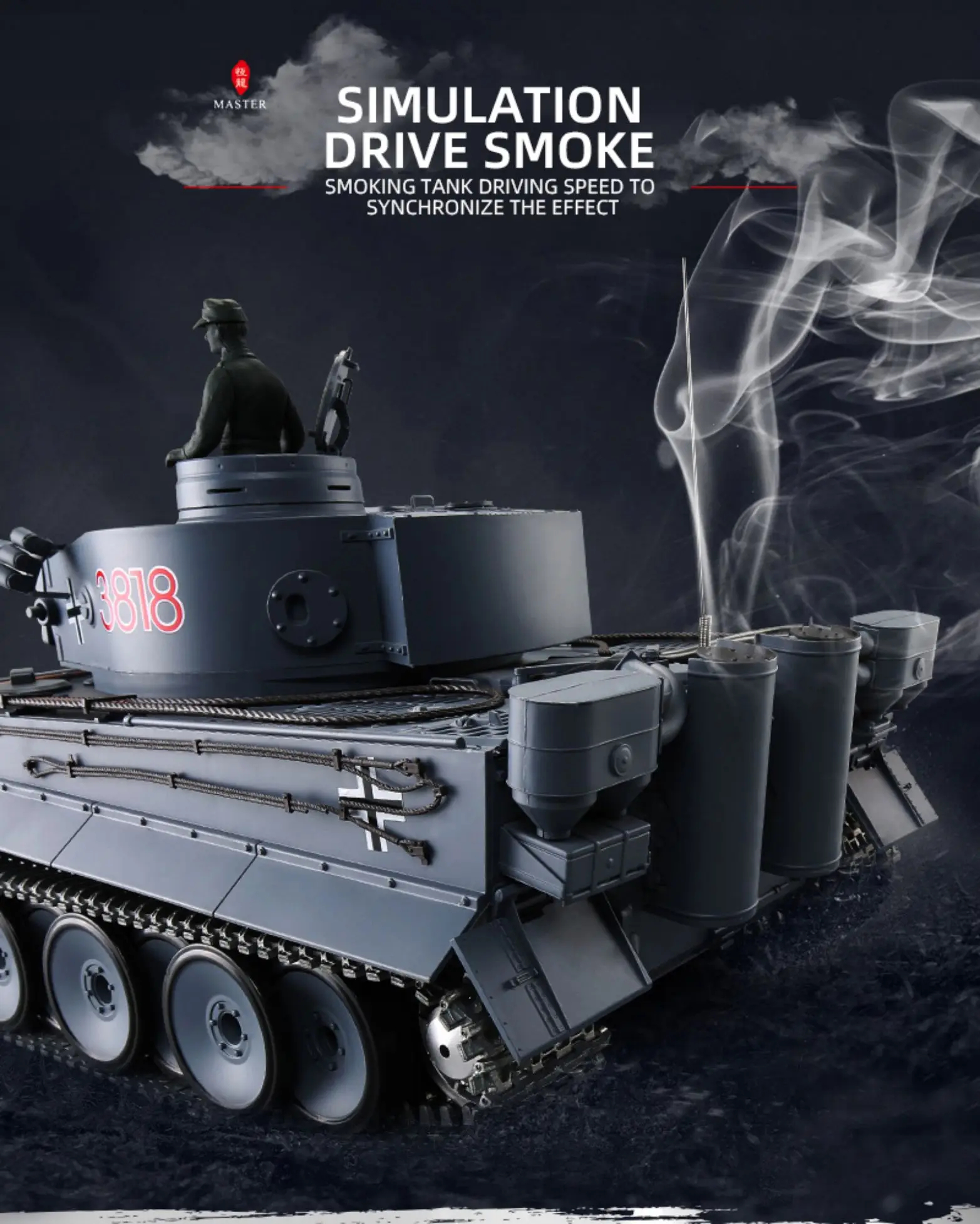 9, Idle Smoking like real tank from ''''engine'''', when tank runs fast the smoke gradually becomes more, but you need to drop liquid into the tank(EACH TIME ONLY DROP ONE DROP)(please note maybe we can not ship liquid to some countries).