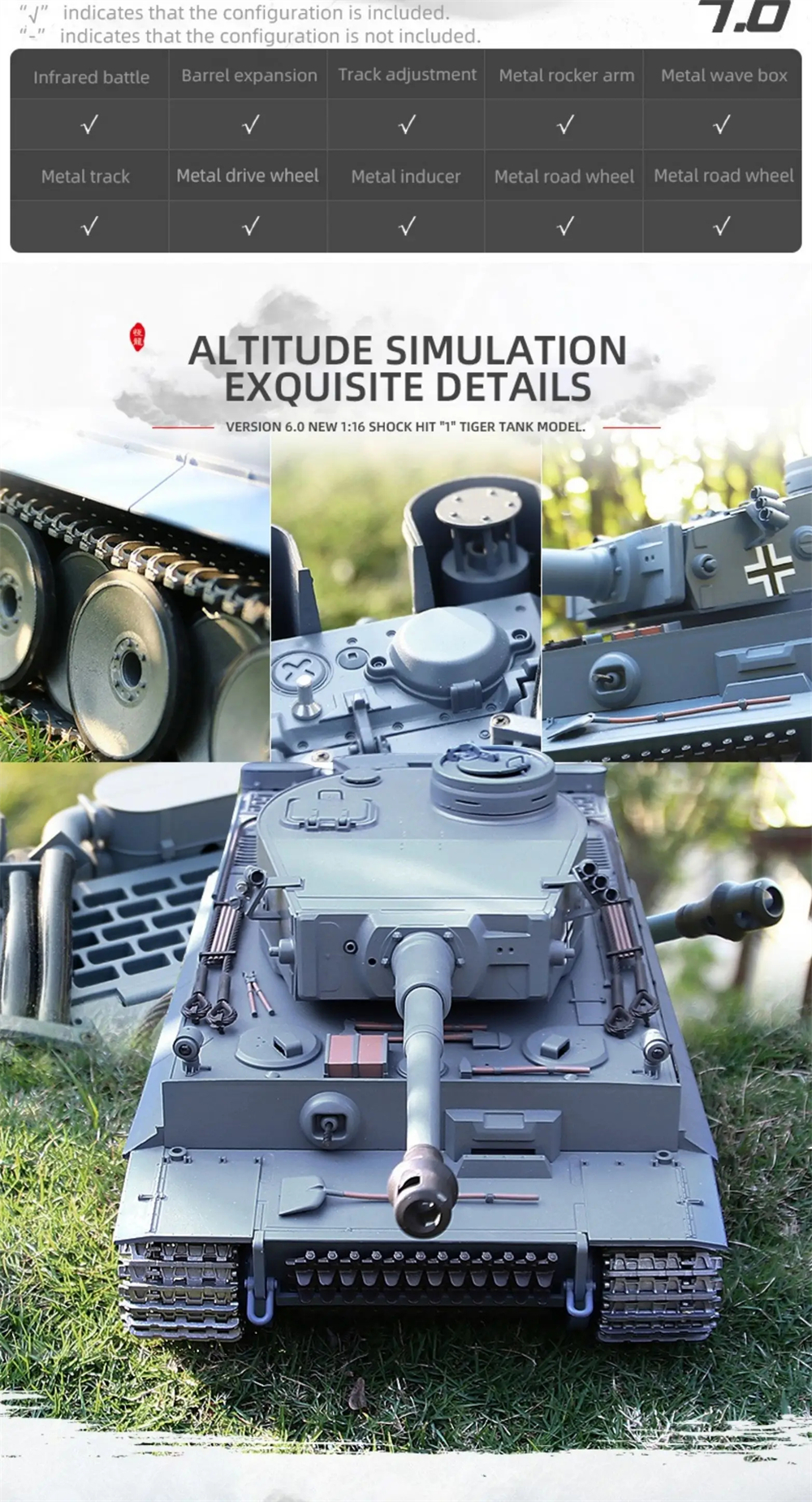 5, Like real tank firing. Shooting 6mm BB pellets with COOL hull-recoil action(hull recoil is not barrel recoil) and firing sound effect. Shooting range 20m.